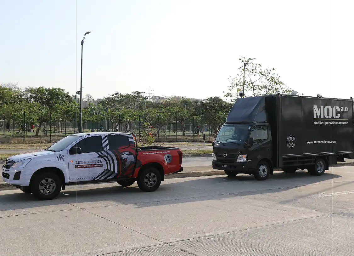 The M.O.C. (Mobile Operations Center) is a high-tech vehicle designed to provide comprehensive security for strategic events and operations. Its advanced infrastructure combines physical and electronic surveillance, ensuring real-time monitoring and immediate response to any incident.